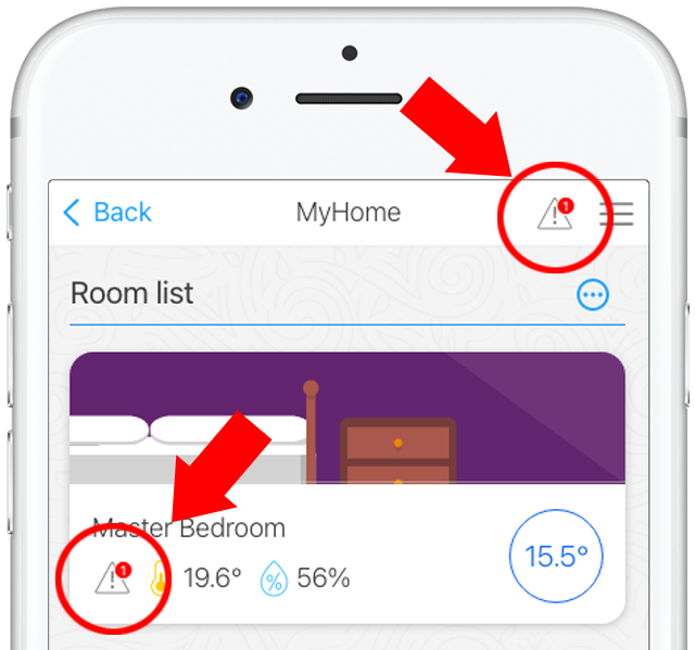 If a battery replacement is required, you will receive an alert. The alert icon will appear at the top right corner, and clicking on it will display information about the specific device and location where the issue was identified.